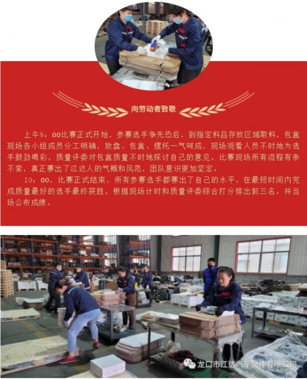 五一節(jié)前夕,在江達公司舉行了一場別具生面的勞動競賽活動——包盒比賽,這是江達公司為迎接即將到來的五一勞動節(jié)所舉辦的特別活動。