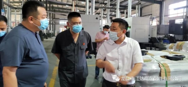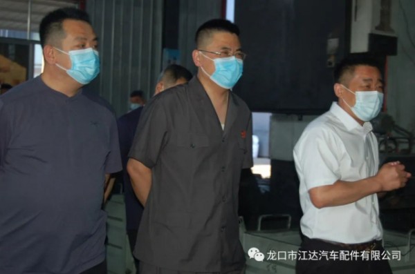 5月30日下午,龍口市法院黨組書記、院長曲振濤在蘭高鎮政府黨委書記魏克義、安監辦主任佟喜寶等領導的陪同下深入江達公司車間現場一線進行調研指導。