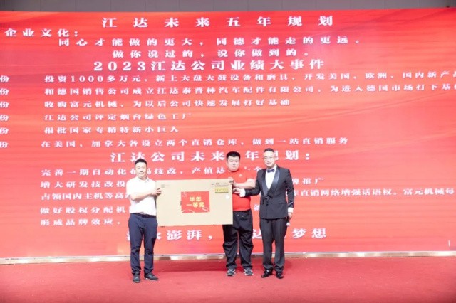 接下來會議節(jié)目精彩紛呈,還不時穿插抽獎環(huán)節(jié),整個會場激情活躍,江達(dá)的家人們對大獎充滿期待,重獎時的喜悅之情溢于言表。
