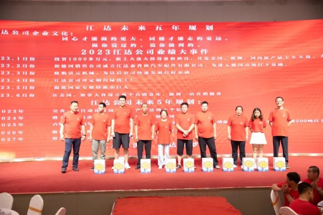 7月16日下午17:00,龍口市江達(dá)汽車配件有限公司在同德利酒店大廳隆重召開2023年度半年感恩總結(jié)表彰會及下半年產(chǎn)值提升攻堅會,出席本次大會主要嘉賓有鎮(zhèn)黨委政府領(lǐng)導(dǎo)魏克義書記、于麗鎮(zhèn)長等政府主要領(lǐng)導(dǎo)以及企業(yè)員工500多名歡聚一堂。 會議在喧騰的鑼鼓聲中開場,震天的鑼鼓敲出了江達(dá)人的激情,敲出了對未來發(fā)展的信心和希望。