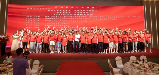 全體嘉賓在觀看江達(dá)公司宣傳片后,江達(dá)公司董事長針對上半年主要工作以及未來五年主要發(fā)展規(guī)劃發(fā)表激情洋溢地講話,未來五年,江達(dá)公司將一步一個腳印,圍繞主業(yè)深耕國際、國內(nèi)市場,以發(fā)展企業(yè),回報社會、幸福員工為目標(biāo),腳踏實(shí)地努力實(shí)現(xiàn)新跨越。