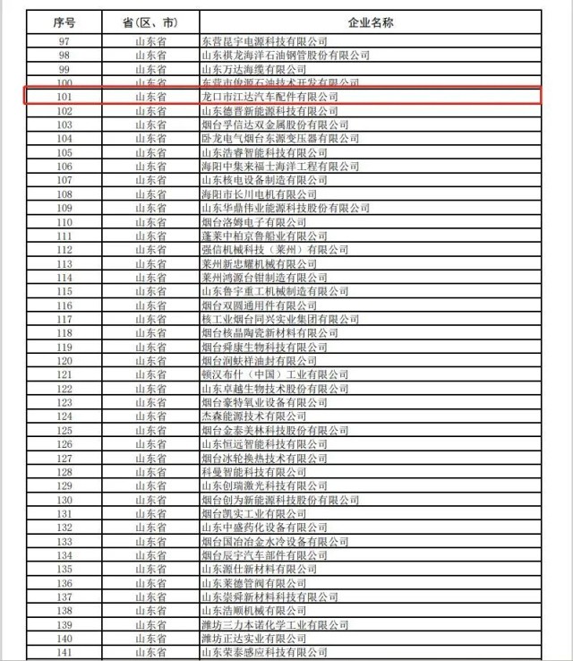 江達汽配憑借獨立自主的技術實力、愈發完善的產品矩陣與持續提升的服務能力在全國1.5萬家申報企業中脫穎而出,一舉上榜第五批國家級“專精特新‘小巨人’企業”,成為本年度龍口市新認定兩家企業之一,這是對我司在汽車零部件制造行業內長期努力和創新成果的高度認可。