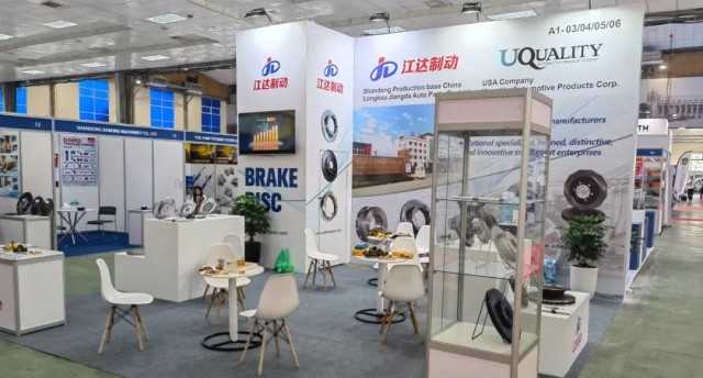 作為市重點倍增培育企業之一的江達公司歷經10多年的沉淀與發展,現已成為專注于汽車制動部件“專精特新”高端鑄造加工企業。江達公司在展會中著重展示了新開發的商用車制動盤、大型工程車輛制動盤以及久美特和電泳特殊工藝加工而成的“綠色”產品。部分產品吸引大批客商紛紛駐足江達展位,饒有興趣得詢問產品主要情況,合作意向濃厚。