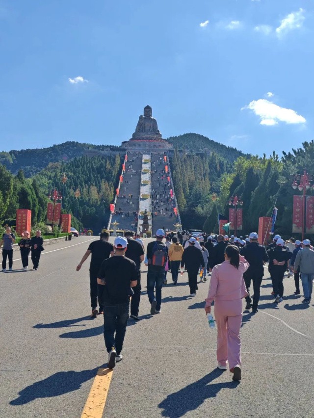 下午江達員工又紛紛乘坐大巴車趕往下一個景點---南山AAAAA級景區(qū),煙臺市南山景區(qū)分為宗教歷史文化園、主題公園-歡樂峽谷和東海旅游度假區(qū)三大部分。主要景點南山禪寺、香水庵、南山道院、靈源觀等均為晉、唐遺跡,世界最大的錫青銅坐佛南山大佛(像高38.66米,重380噸)和國內(nèi)最大的室內(nèi)玉佛南山藥師玉佛(像高13.66米,重660噸)成為景區(qū)兩大亮點。
